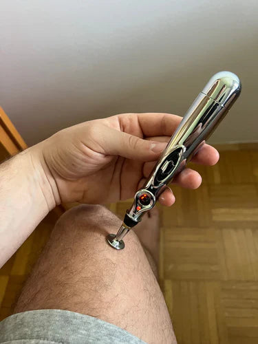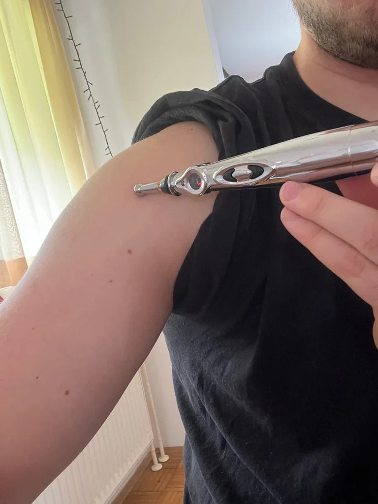 Instrument DrPunktura wykorzystuje delikatne impulsy elektryczne do aktywacji punktów akupresurowych — dokładnie tak jak tradycyjna akupunktura, ale bez igieł. Jest bezbolesny, prosty w użyciu i idealny dla każdego, kto chce cieszyć się korzyściami akupunktury w domu. Pomyśl o tym jak o nowoczesnej metodzie na lepsze samopoczucie — bez igieł!