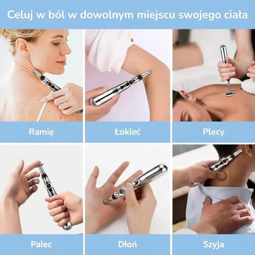 Możesz go używać na szyi, ramionach, plecach, kolanach, stawach, dłoniach, stopach — praktycznie wszędzie tam, gdzie odczuwasz dyskomfort.